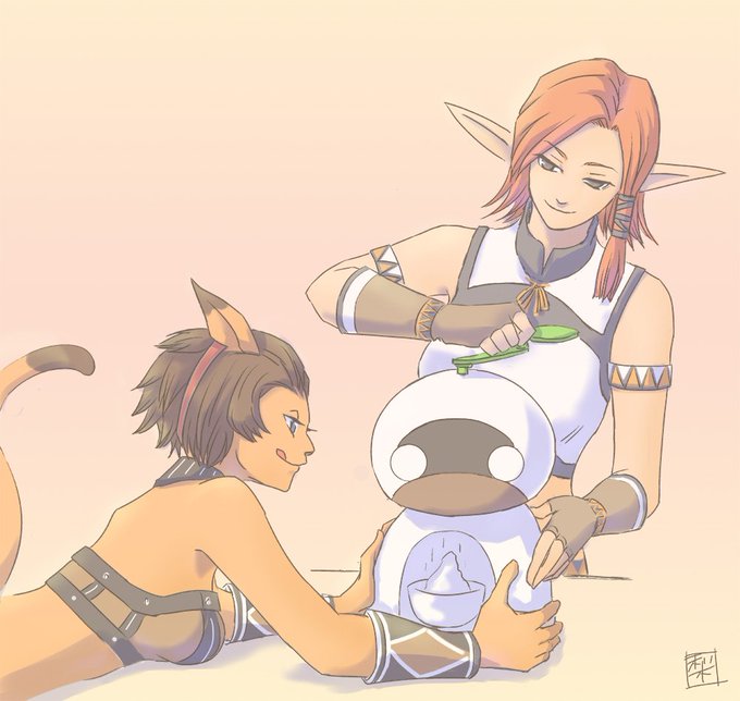 夫氏依頼で、倉庫チャンの装備ゲットお祝いイラスト。 このミスラさん、描くの2回目になってしまったー。 ま、いっか('Д') #ff11 #イラスト