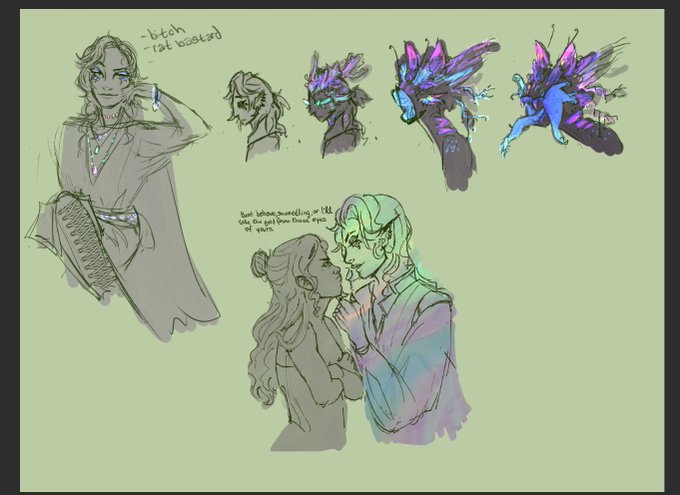 I'm always unsure if sharing lil personal doodles and sketches are something to share on twitter but me and a friend have oc's that kiss (POINTS AT PIPER LIKE A MADMAN) I may post more piper and oberon being dumb if it is chill tho