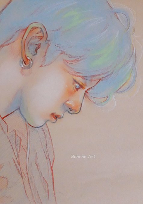 Drew the same photo of Koo in 2 different mediums ( pencils and soft pastels ) because I love it 🥺💜
