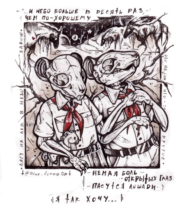 Couple of rats in pioneer ties and a crippled, but still sincere feelings 🦷 💔 🦷 #valentinesday2021 #ValentinesDay #walentynki #пионерлагерь #пионерлагерьпыльнаярадуга #rats #artistsontwitter #art #artworks