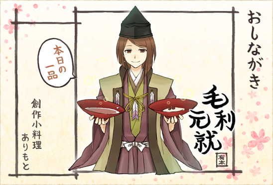 ◇本日の1品(イラスト)は…『毛利元就とお酒とお餅』です。