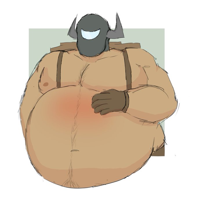 Here's a drawing I made of my friend's OC named Ihon hehehe I hope you enjoy #weightgain #bellyinflation #fatknight