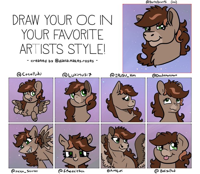 I did a thing. lol. I never did one of these draw in a certain style memes so i tried it out with some of my favorite pony artists styles. :3