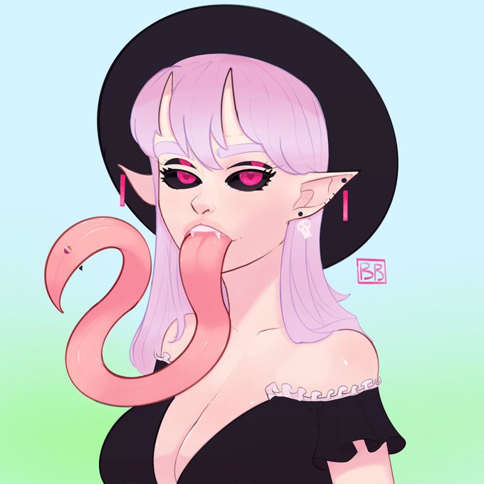 @cmyklala This is Ceridwen 💖 She’s a demon but pure of heart and dumb of ass, loves her girlfriend, her tongue has a length of around 300cm atm, she enjoys baking, cooking, monster trucks and soft gaming. High femme ESTP 💖