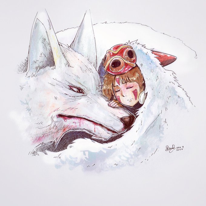#doodle #artoftheday #studioghibli #ghibli #ghiblistudio #mononoke #wolf #gore #watercolor #watercolour #fanart #miyazaki #漫画#マンガ #お絵描き