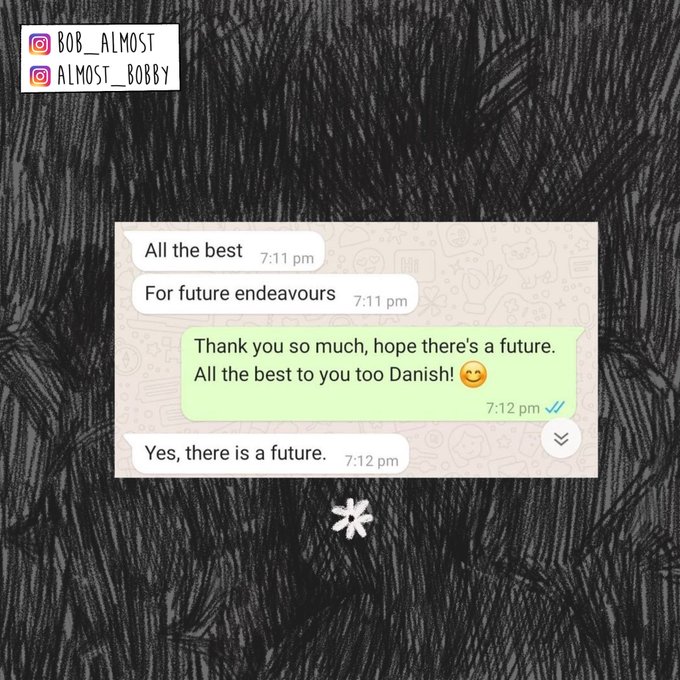 @bob_almost and I had this little exchange with Danish Siddiqui a year back. A person who documented some of the worsts of human tragedies over a decade, left a little message of hope for us.