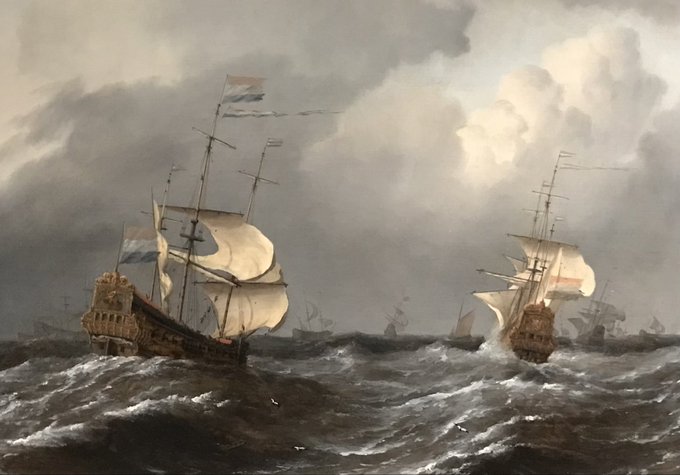 De Gouden Leeuw op zee in zwaar weer (uitsnede), 1671, Willem van de Velde de Jonge In ‘Willem van de Velde & Zoon’, Scheepvaartmuseum, Amsterdam #art #kunst