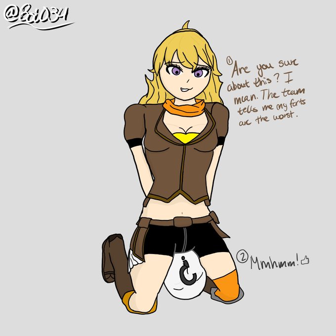 Yang being the jokester she is like usual....or is there something more happening here. Poor Ruby and Weiss though. Having to hear, and smell that. Seems like Blake doesnt mind. Guess that's the bumblebee duo for you lol.