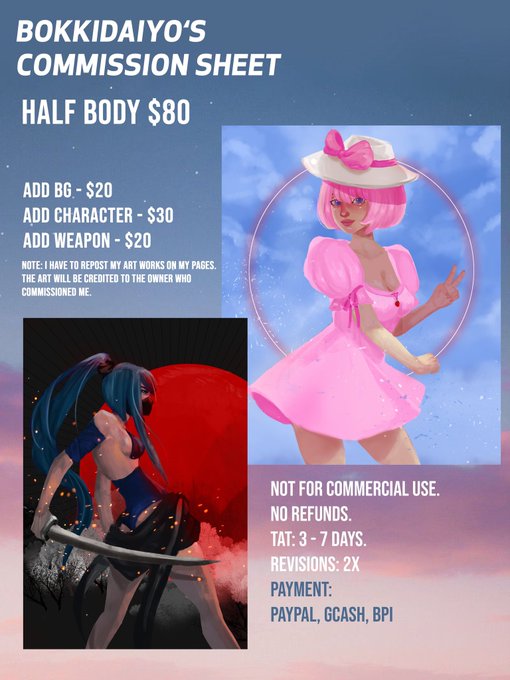Hi, I'm new. I haven't been commissioned for ages. Please notice and RT. I highly appreciate it. I need funds for my college books so please help. Commission queue (0/10).