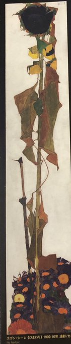 シーレはなんといっても長い長い『ひまわり』!花の部分は既に黒く、種になっているのでしょう。足元の花々と合わせて死よりも再生を感じます。ポスカないのでマグネット買っちゃいました。 #Bura_Bi_Now