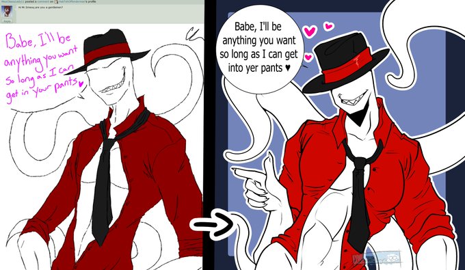 Been going back through my Slender ask blog on DA and redrawing some of the very first questions I drew up all the way back as far as 2014 XD I love redrawing old work and seeing how far I've come!