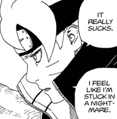 Gotta hand it to Boruto,he’s psychologically strong as an MC, many would easily fall apart  being in this situation, but Boruto’s always putting up an unflinching persona as if everything is okay when he knows