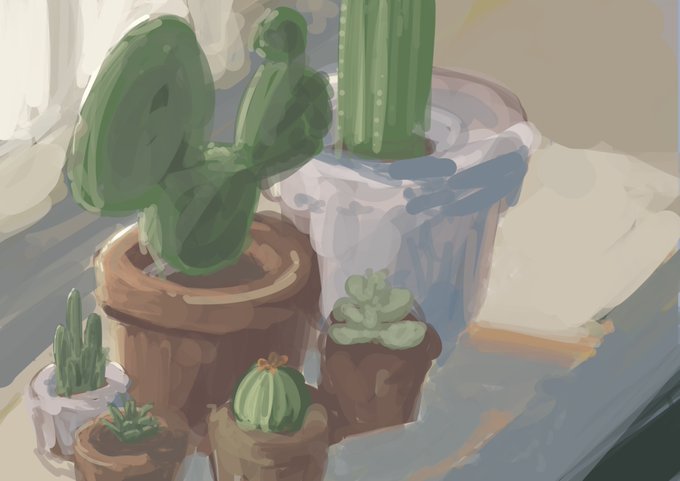 #背景版深夜の真剣お絵描き60分一本勝負 お題:サボテン 大遅刻 そして近景