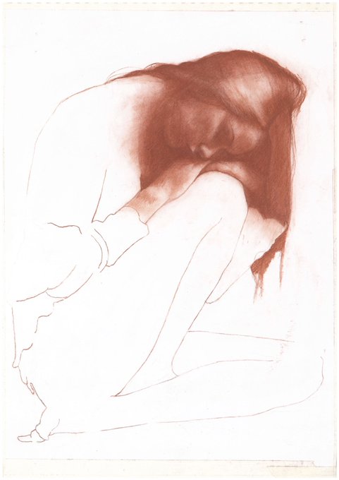 #Figurative Original Red Chalk Drawing on Paper titled ‘Where Nobody Knows’ by Patrick Palmer.