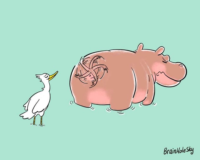 #inktoberchallenge #inktober2021 #illustration #hippo #brainholesky #Fan