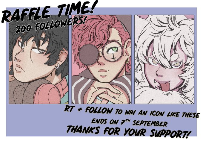 RAFFLE TIME! THANKS FOR 200 FOLLOWERS! 🎉🎉 -Follow and rt this to enter -The winner gets an icon like these -Ends on September 7th, good luck!!!!