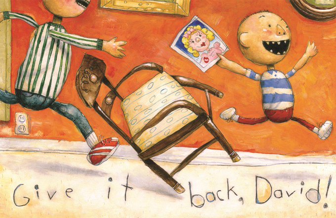 Little-brother antics! The beloved character from No, David! is now taunting his older brother by eating his Halloween candy, making a bathroom mess & following him up tree house. "You're too little!" won't stop David's tricks. GROW UP, DAVID! by David Shannon is now available.