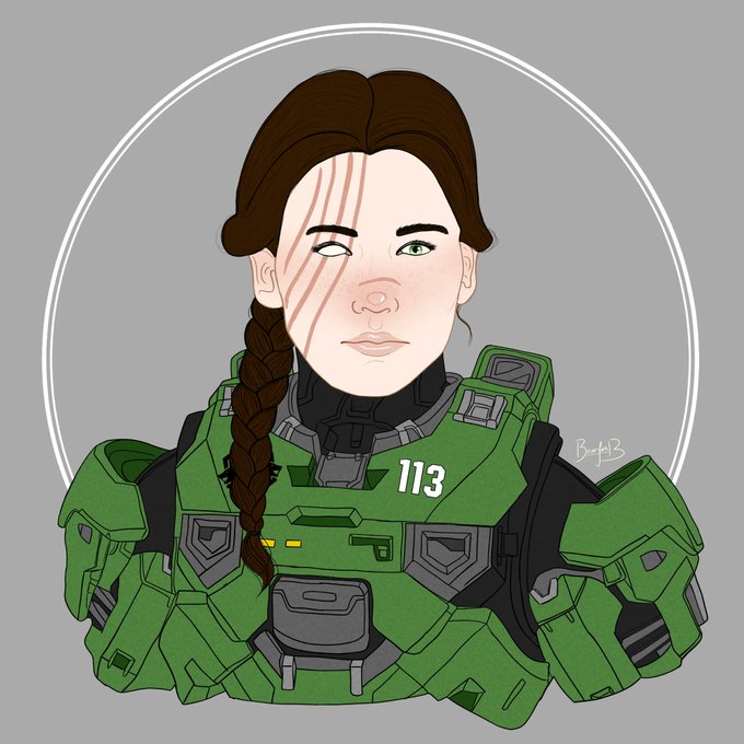 @AhiruLady I'm working on a Noble Six to match my John illustration (which I'm very proud of). And I really like how my Spartan OC's (Hestia-113) official portrait came out!