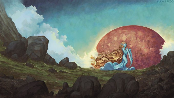 My favorite part of the process is either line-art or adding in colors to set the mood/ambient.