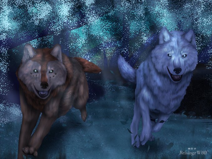 I really hate the background, but my program won’t let me back into the canvas without crashing it so I’m stuck with it :/ I didn’t want to trash it tho because I like how the wolves came out