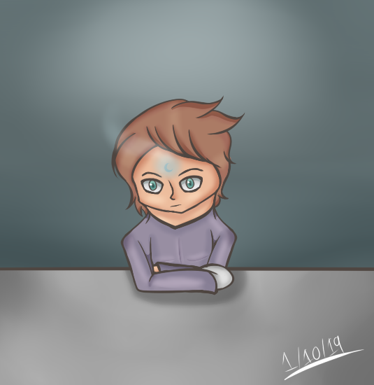 Late night drawing of Leonard holding chibi Mullin-