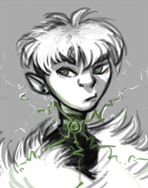 They channel their magic through a small green seeing stone they wear on a choker