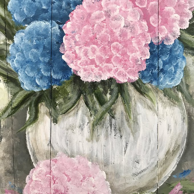 Pallet wood hydrangea painting 🌸