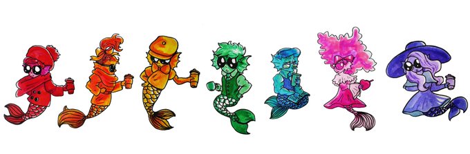 A rainbow of fashionable, sassy merbabies (click for full image) ❤️🧡💛💚💙🌸💜