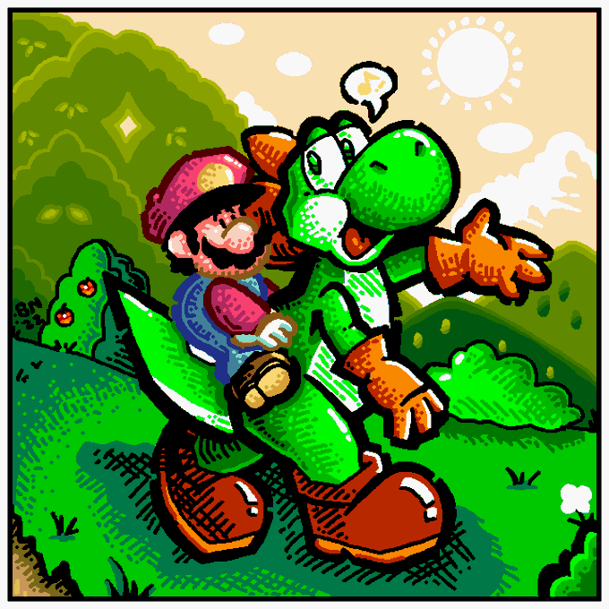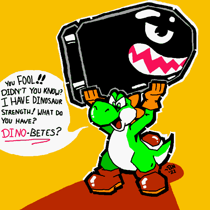 @RadSpaceKoopa Wait, which Yoshi??? Ah well, I'll just draw the dapper, purple one that's clearly in-frame instead. 😜
