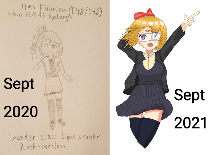 It's been roughly a year since I started drawing, so I put my first and most recent drawings next to each other. It's kinda cool to see how much has changed.
