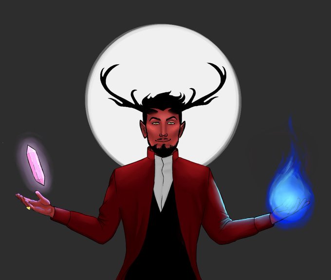 Big thanks to @heccbri for drawing my CN Sorcerer Tiefling Zich (zee-k) i always look back on this drawing fondly and yall should all go look at her art too thx #dungeonsanddragons #dnd #artist #ttrpg