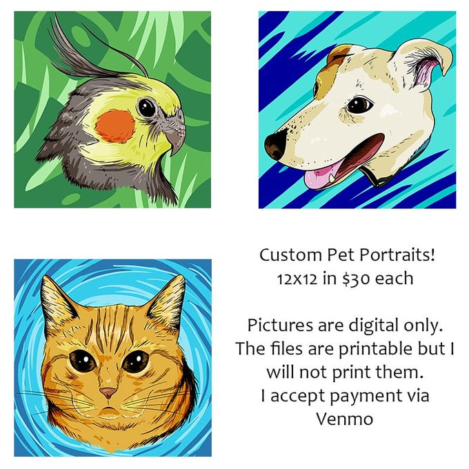 #PortfolioDay I'm an illustrator who does characters, monsters, and pet portraits. My commissions are open!