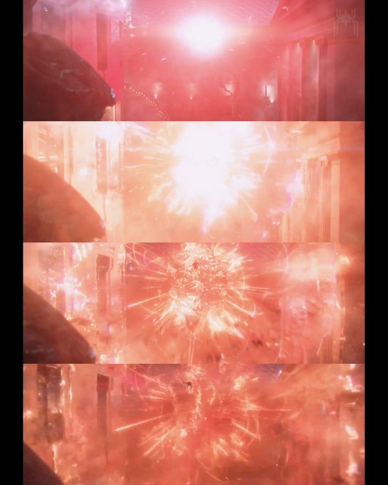 Viendo otra vez el tráiler de 'Doctor Strange in the Multiverse of Madness' se puede ver como sale ¿Defender Strange de un portal de América Chávez? en esa base llena de ultrones (en la primera imagen se pueden ver las estatuas).