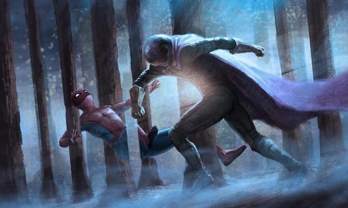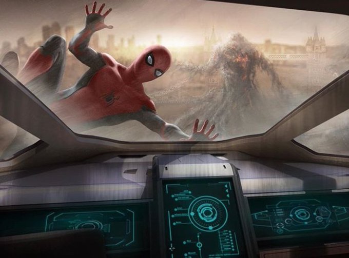 Múltiples artes conceptuales de 'Spider-Man: Far From Home', donde vemos sobretodo versiones diferentes de las ilusiones de Mysterio.