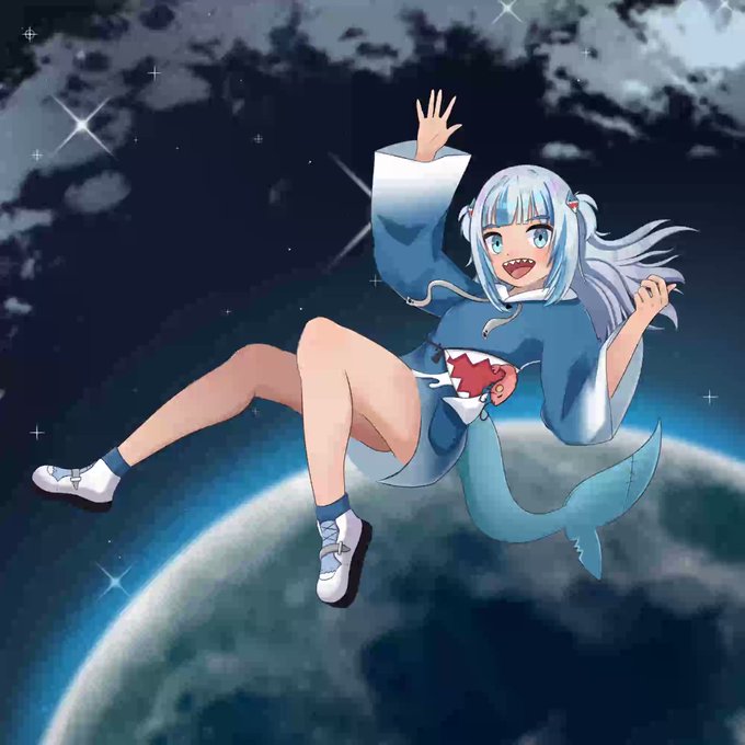 The art for the remix cover, featuring a cute little @gawrgura in space!