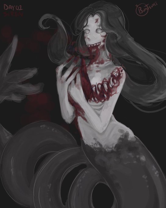 Day One: Siren. No need to worry, I censored her female nipple. #inktober #inktober2021 #pastelsharktober #art #artist #animeartist