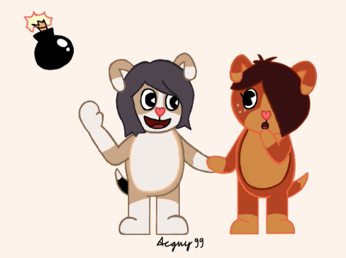 Another collab with the amazing artist @RandyRaccoon2,this time Happy Tree Friends themed and featuring a smug Petunia,drawn by your truly and an absolutely amazing jelous Giggles drawn by him,hope y'all like ❤❤❤