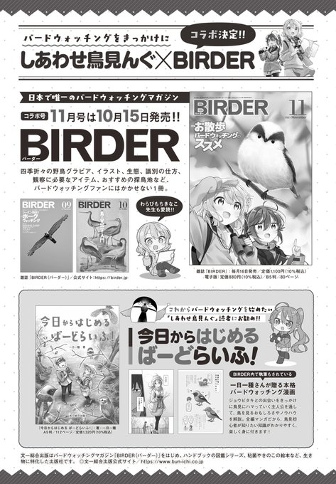10/15㈮発売!雑誌 #BIRDER 2021年11月号は、『#しあわせ鳥見んぐ』(芳文社/まんがタイムきらら)とのコラボ号‼️
