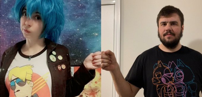 And finished woop!!! Me and @chewee123 fist bumping in our final space tee's RL version and our oc's 🥰 #finalspace #starcadet #nesblue #chewee123 #bluestrike #happyplacegary #theotherside