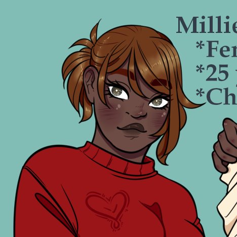 She's a very pretty baby and I heckin' love her so much. She's a silly, ambitious woman who thinks her roommate's stories of being a spy is just that--stories.