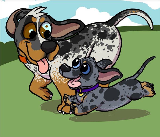 @DoxieMoron Jonesy, a cocker spaniel and a merle weenie puppy named Daniel