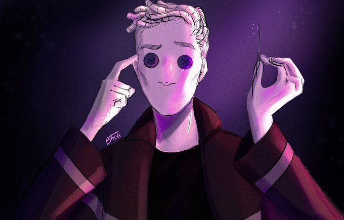 @baniiwu Killersito con disfraz de Wybie, personaje de Coraline 🎃✨