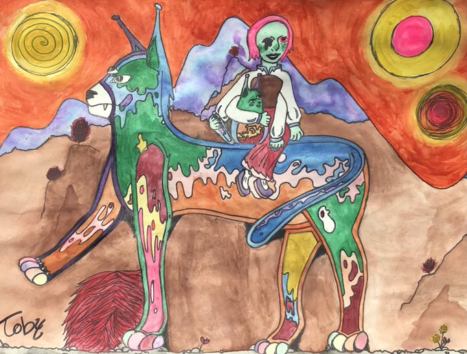 Just an alien girlie with her alien cat, made with watercolor! #Alien #traditionalart #Watercolour #Watercolor #watercolorpainting #Watercolors #art #artistsontwitter #artist #ArtistOfTwitter #drawing #painting #artwork #artmoots