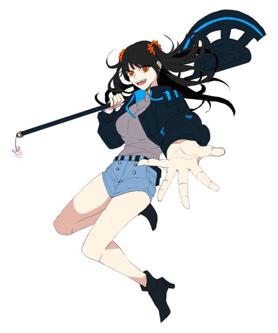 #オリキャラは性癖の見本市 武器を担ぐ女の子大好き♡ジト目(譲れない)ぱっちりお目目みんな好き太腿が良いと更に( ˙꒳˙○)マル大食いキャラだと発狂できる。