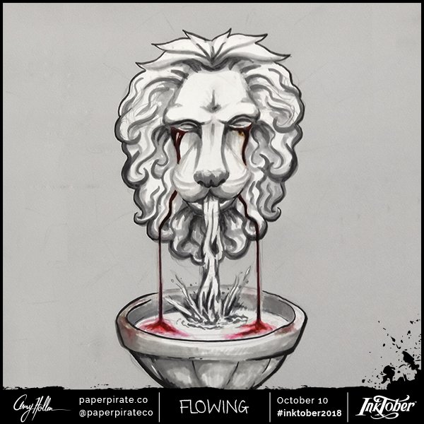 #inktober2018 #fountain #lion #blood #spooky #illustration
