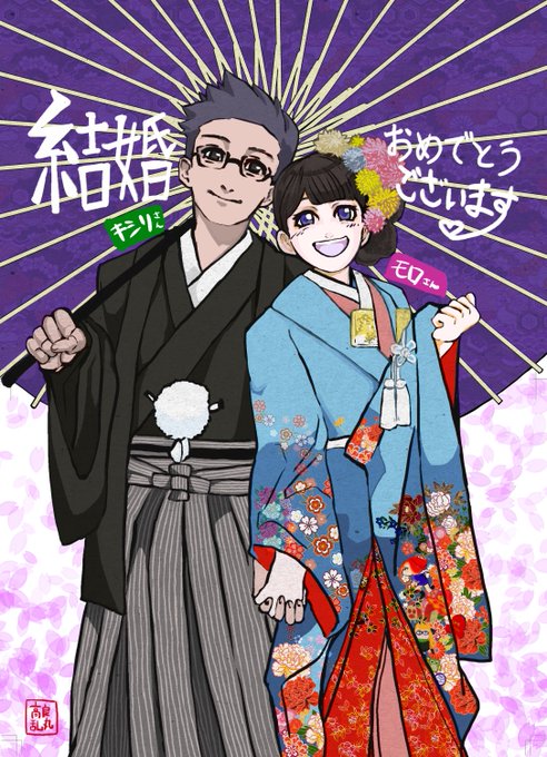 キシリさん(@sakurasaku_xyli )とモロモイマルさん(@moromoimaru3412 )の結婚式お祝いイラストを描かせて貰いました!幸せお裾分けしてもらってます💕末永くお幸せに!!!!