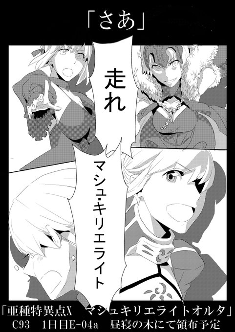 C93新刊出ます 『亜種特異点X マシュ・キリエライト オルタ』 マシュを主役にした1.5部が読みたくて描きました。 昼寝の木(一日目東E-04a) 132pのちょっと厚い薄い本です。 領布価格は500円を予定しています。
