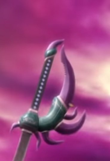 @KureaHt69_2034 アニメのカニキリは紫のパーツの反り返りが小さいんだよね あと甲羅みたいなパーツの部分と柄の間にある金色のパーツの形が違うし アニメの方が膨らみが大きい