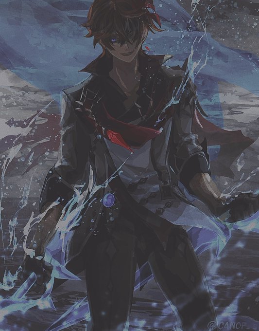 #今月描いた絵を晒そう 寒色よりに原神くんを描きました!