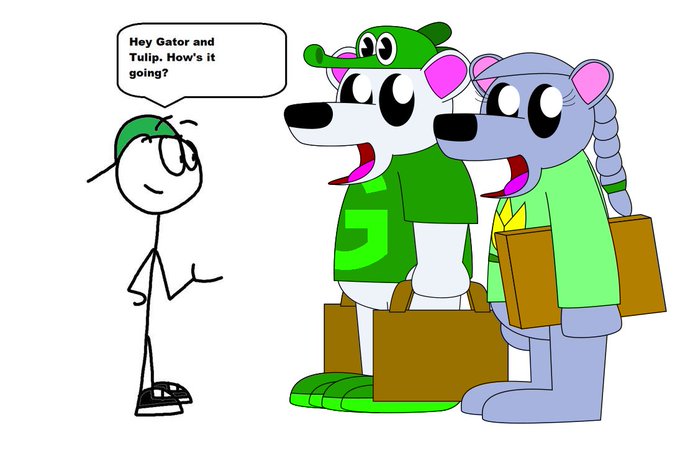 A collab that I did with GandB101 On DeviantArt I drew Gator and Tulip saying hi to him.